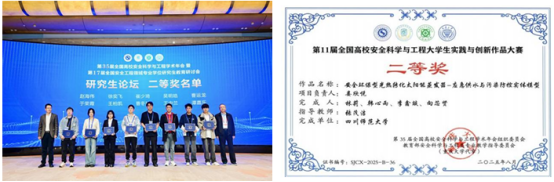 在研究生论坛活动中,来自不同高校的多位优秀研究生基于各自开展的科研项目和论文成果进行展示。我院安全工程专业研究生王柏凯同学与来自全国的多名同学同场竞技,经激烈角逐荣获二等奖。由张茂洁老师指导、林莉等人完成的作品《安全环保型光热转化太阳能蒸发器-应急供水与污染防控实体模型》荣获第11届全国高校安全科学与工程大学生实践与创新作品大赛二等奖。彰显了我院本科生和研究生的科研素养与精神风貌。