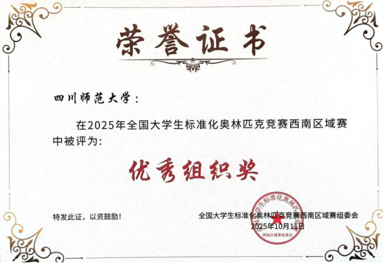 2025年9月27日,2025年四川省大学生国际标准化奥林匹克竞赛暨全国大学生标准化奥林匹克竞赛西南区域赛在宜宾学院圆满落幕。经过专家严格评审,由我院安全工程系张茂洁副教授、王雨副教授带队参赛的队伍在现场决赛中表现优异,共荣获省级二等奖2项、三等奖6项,区域赛二等奖2项、三等奖4项。四川师范大学荣获“优秀组织奖”。
